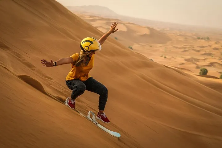 Slide down the desert dunes on a sandboard for a fun and unique experience.