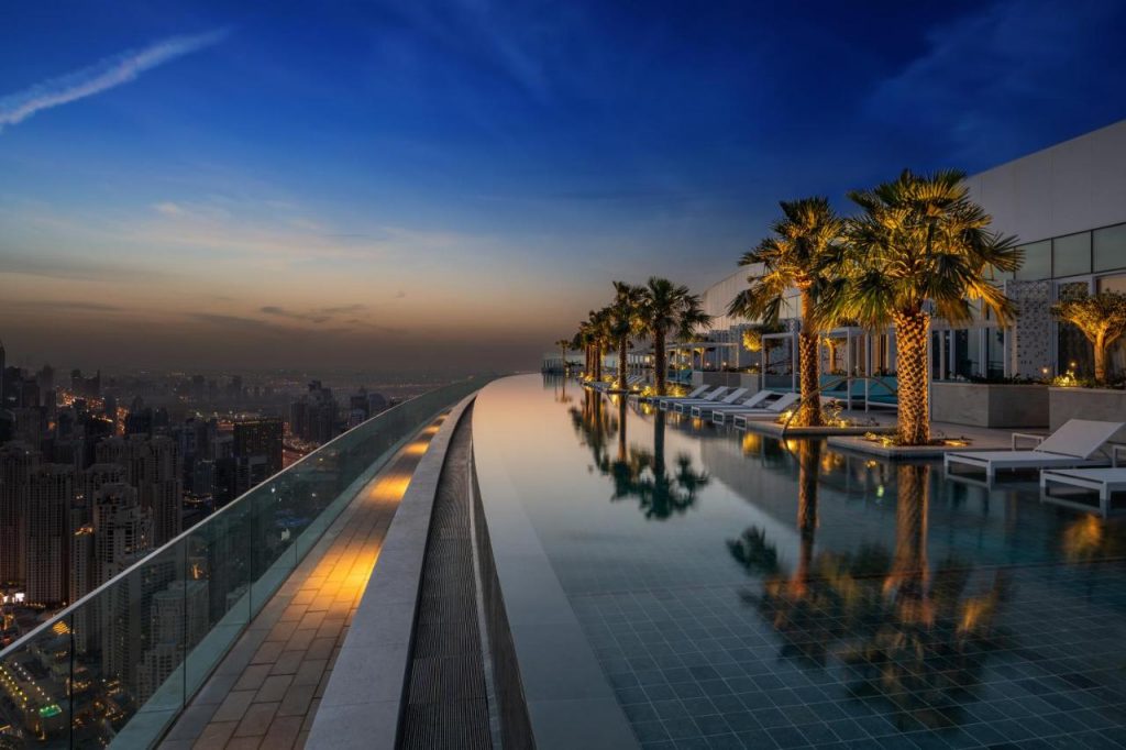 تم تسجيل مسبح الإنفينيتي في منتجع العنوان بيتش في موسوعة غينيس للأرقام القياسية باعتباره أعلى مسبح إنفينيتي في العالم. بارتفاع 77 طابقًا فوق المدينة، يوفر هذا العجوبة المعمارية من تصميم Killa Design إطلالات لا مثيل لها على معالم دبي، بما في ذلك عين دبي ونخلة جميرا. يضم المنتجع 217 غرفة وجناحًا، والعديد من أماكن تناول الطعام، وسبا فاخر. يمتد المسبح نفسه لمسافة 293.906 متر في السماء ويشمل حفر مدمجة للاسترخاء، محاطة بأشجار النخيل وأسرة شمسية مريحة، مما يخلق واحة حصرية للاسترخاء. يجمع منتجع العنوان بيتش بين الفخامة الحديثة والأجواء الشاطئية الهادئة.